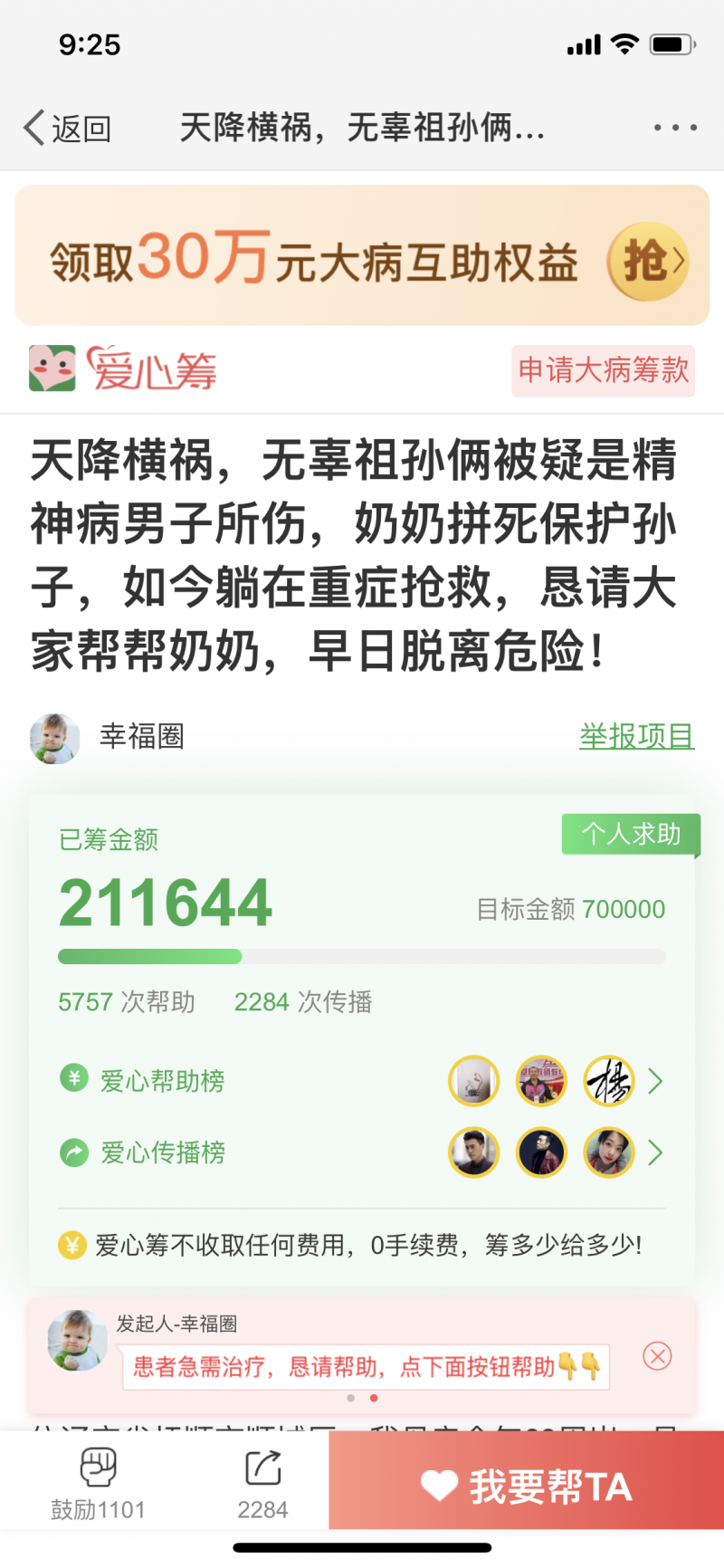 據北京頭條客戶端4月13日消息,近日,壹則小學生奶奶受傷,醫藥費只需7萬卻籌70萬遭其他家長質疑的視頻在網上引起關注。4月1日,撫順壹名奶奶帶孫子去醫院時無故被壹男子毆打受傷,隨後,奶奶因腦出血連做兩次開顱手術,目前還在ICU,孫子頭部也因受傷縫了近20針,目前還在醫院觀察。事後,家屬在網上發起目標金額70萬的籌款,受害小學生所在學校也發倡議書提倡全校捐款。但有學生家長反映,受害學生家庭並沒倡議書說的那麼困難,而且治療費也不到7萬元,質疑其籌款金額過高。