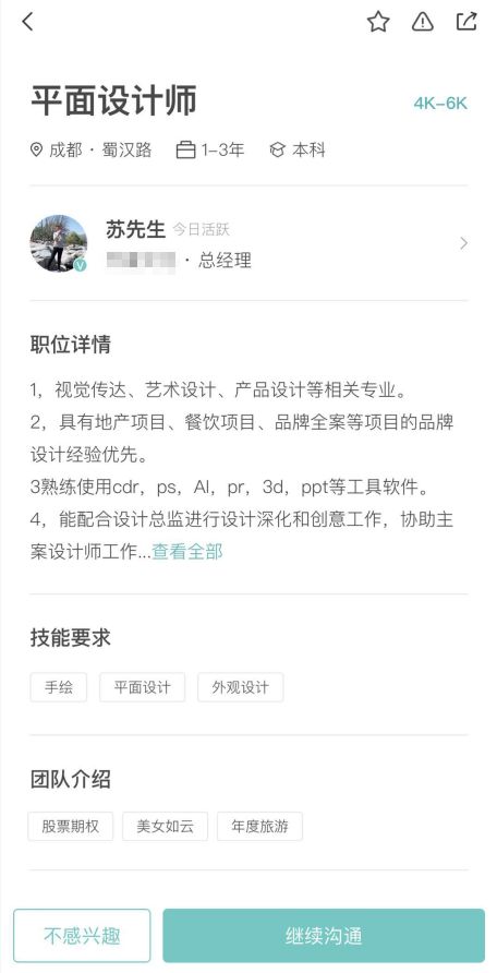 最近,壹位從多倫多回國沒到壹個月的女生小A,壹直在成都找設計類的工作。某天,有個公司總經理蘇先生,突然在某求職類的手機APP裡突然聯系她說,看了簡歷覺得非常不錯,要加微信聊。