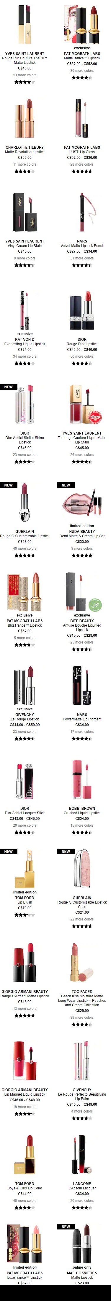 Sephora Canada 現有口紅8折熱賣。