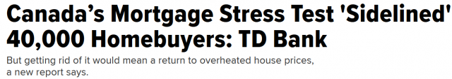 加拿大TD銀行上周發布的壹份報告稱,在過去的2018年,至少有40,000潛在買家因壓力測試而被拒之門外,他們因貸不到買房款而望屋興歎。