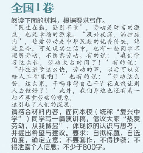 看完全國Ⅰ卷的作文試題,段子手壹秒“杠精”表示:明明是端午節,非讓人過伍壹勞動節。