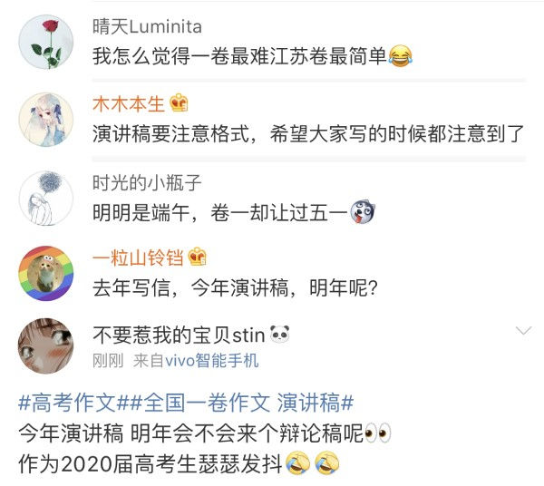 2019年全國高考語文科目考試已劃下句點,全國高考作文試題全部新鮮出爐。此時此刻,對於全國的段子手們來說,壹年壹度的“抖機靈”大會正式拉開帷幕。