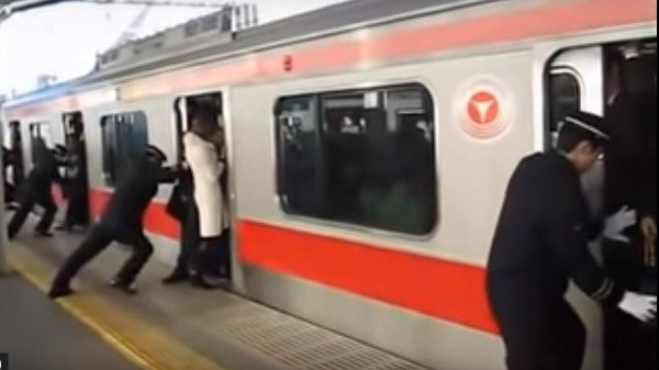 日本首都圈早上的电车通勤,可以说是世界上独有的现象。因此也产生了对应这个现象的工作──“月台辅助员”。(图片来源:youtube视频截图)
