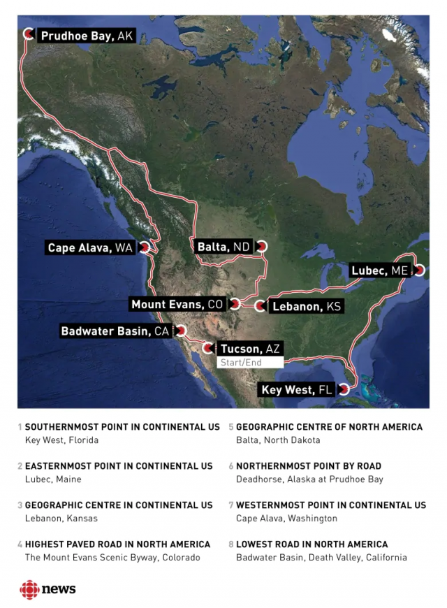 安德森对CBC表示,他的计划是跨越美国32个州、加拿大5个省和地区、用两个月的时间驾驶特斯拉电动车走过25000公里,然后抵达阿拉斯加的普拉德霍湾——这是能开车到达的美国最北端。