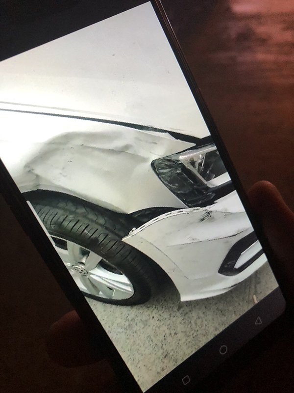 周先生向記者展示其車輛被撞的圖片。