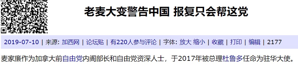 這不前駐華大使麥家廉,前天又開口說話了,想來是想幫助做個中國和加拿大的和事佬,沒想到惹到了保守黨。