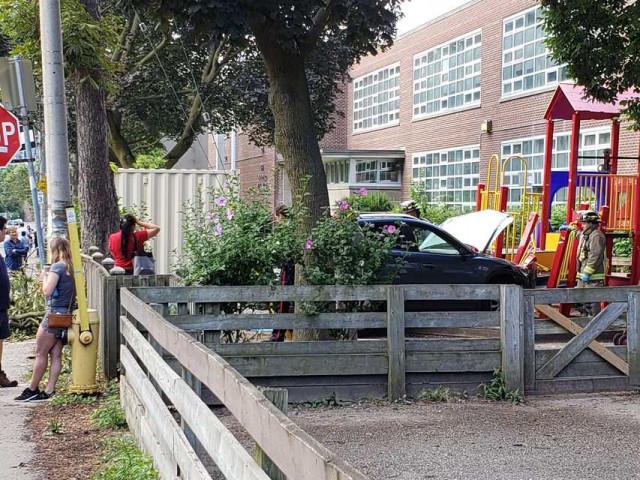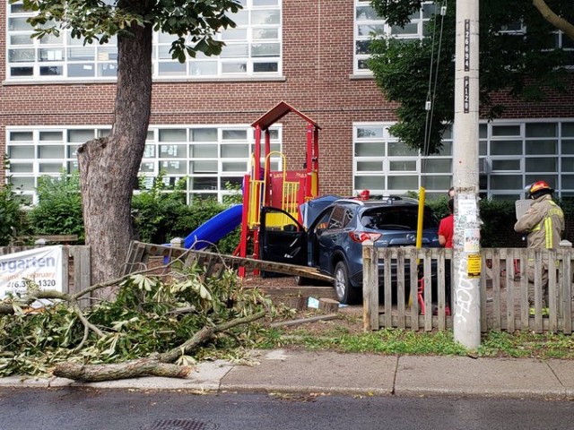 周壹上午,壹輛SUV車沖入多倫多市壹間公立小學的操場,現場壹片狼藉。
