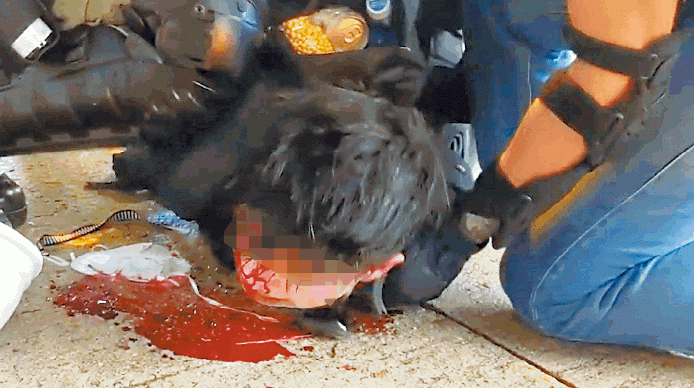 家樂仔被制服期間遭打崩門牙,滿地鮮血。