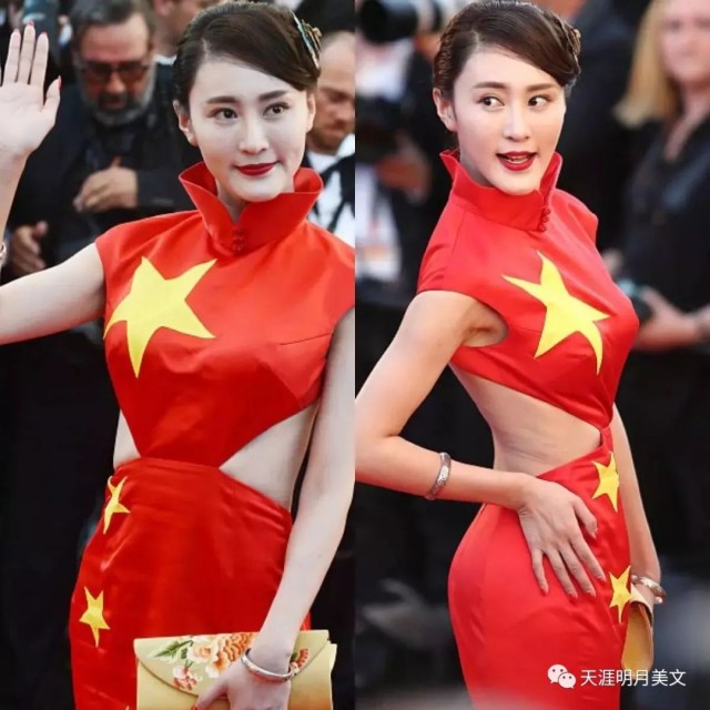 網絡名人徐大寶現身戛納你可以看看她紅地毯的形狀,壹定壹眼就能認出她,她是戴著我國國旗的。