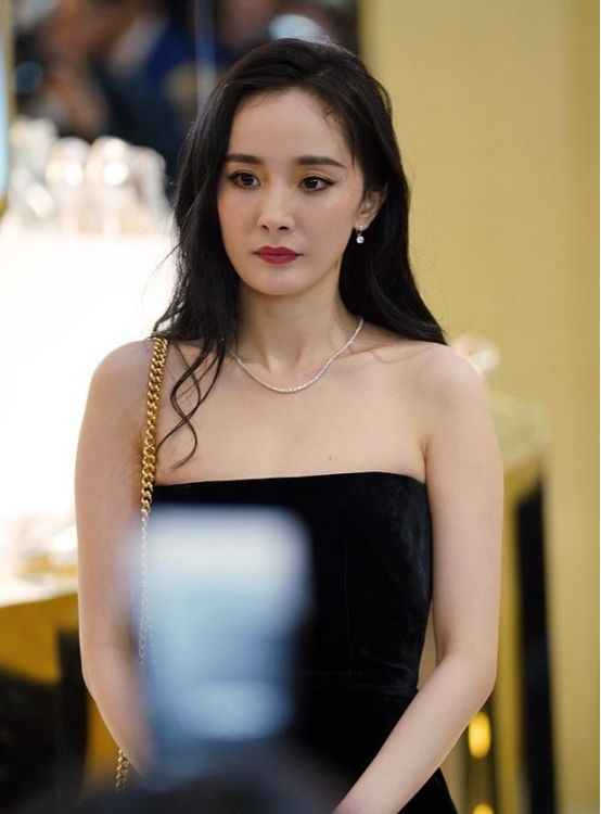 但楊冪的臉色很不太好看,拍照時完全沒有笑意,神情上也相當落寞,雖然妝容很精致,但是濃重的黑色眼線配了光感度不高的粉底,飽和度明顯不滿,整個人都沒什麼精氣神。