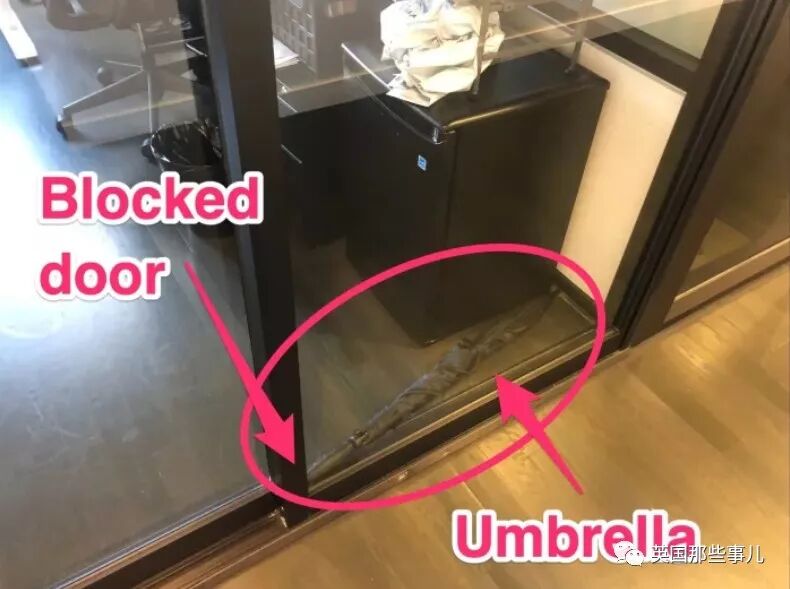 國外壹位小哥下班時忘記帶傘,再次上班時發現,這把憤怒的雨傘居然把辦公室“鎖”了起來……