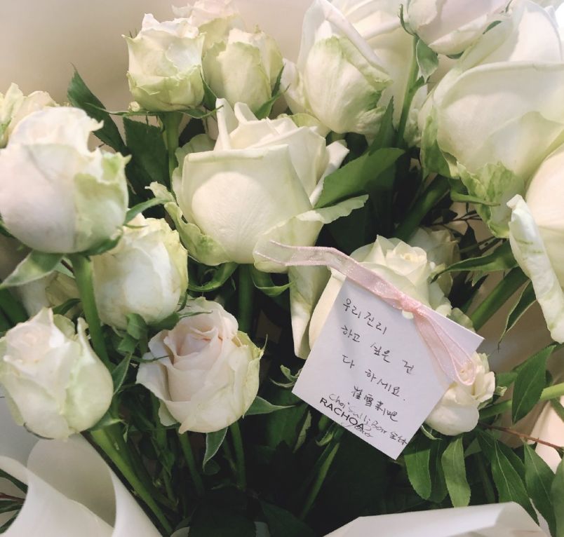 粉絲為她帶來了26朵白玫瑰,白玫瑰的花語是純潔,也代表著雪莉永遠停留在了26歲的花季年齡。(韓國計算方式為虛歲)
