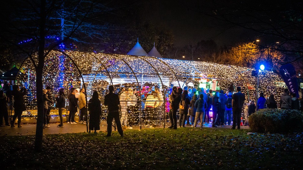 每當夜幕低垂,公園就會被裝飾壹新的燈光照亮,美輪美奐的伍光拾色的燈光,吸引市民駐足欣賞拍照。游客可以在不斷變化的花園中體驗迷人的燈光秀,欣賞整個花園的燈光照耀的樹木,耀眼的展示和閃爍的燈光, 漫步在不斷變化的色彩中。