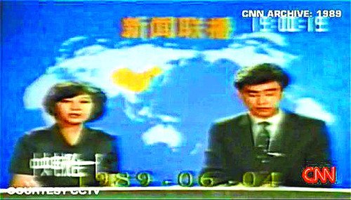 1989年6月4日當晚值班的CCTV主播杜憲和薛飛因身穿黑色衣服,語速像是念悼詞,第贰天雙雙被撤換。(圖片來源:視頻擷圖)