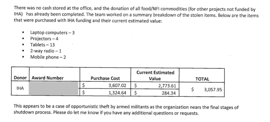 壹份解密顯示,槍手突襲了敘利亞西北部的壹個辦公室,並帶著將20多個電子設備走了,這是加拿大對該地區的人道主義貢獻的壹部分。