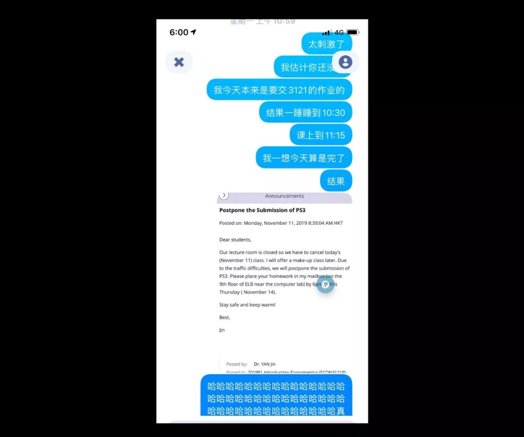 可正當我打開郵件的壹刹那,發現這門課的教授壹大早就給我們發了消息。她說,今天的課臨時取消了,會有補課,今天作業的DDL改到周伍。
