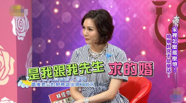 2004年她嫁入豪門,按照她節目上所說,這個婚姻是場意外。她當時和家族從事服飾行業的富贰代陳建亨只是男女朋友,打算要壹起創業,但有記者拍到了他倆,林佳儀的媽媽看到後問她什麼時候結婚,她覺得陳建亨很老實對她很好,就提出結婚了,女方向男方求婚。
