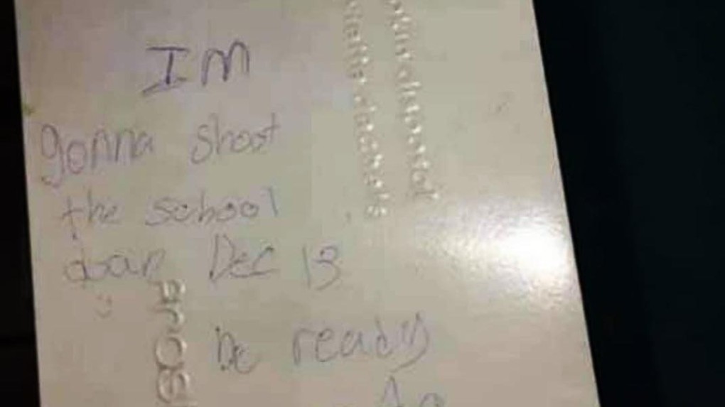 這些威脅信息分別出現在學校3個衛生間內,其中寫在垃圾桶上的信息:“我要在12月13日對學校開槍,准備好。”