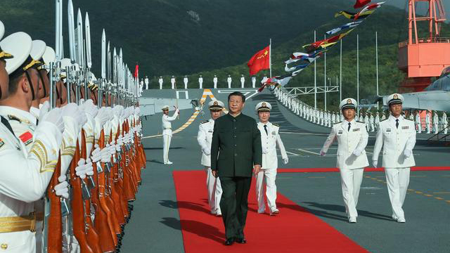 2019年12月17日,中國領導人習近平出席航母山東艦的交接儀式。(視頻截圖)