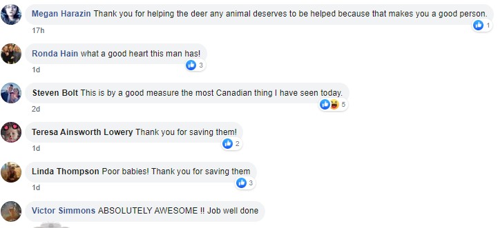 因為,他在岌岌可危的薄冰的湖面上,拯救了3只小鹿。