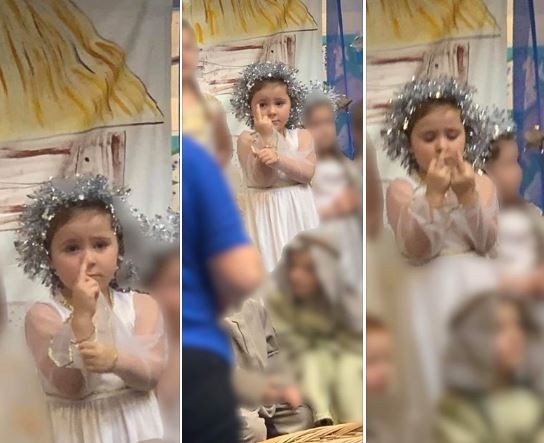 綜合外媒報導,來自英國的5歲女童艾拉在耶誕節活動中穿上了潔白的洋裝以及銀蔥頭飾,扮成天使上台進行20分鍾的表演,不過接下來這名女童開始朝著觀眾狂比中指,足足比到表演結束,讓觀眾相當納悶。