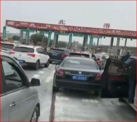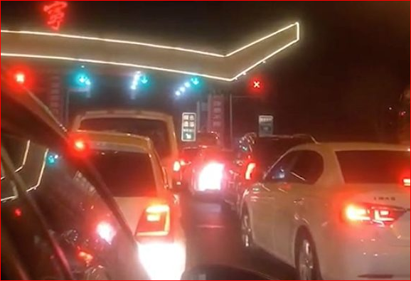 由於等候的時間過長,被堵在收費站的司機們紛紛鳴喇叭表示抗議。- 新聞來源於其它媒體,內容不代表本站立場!