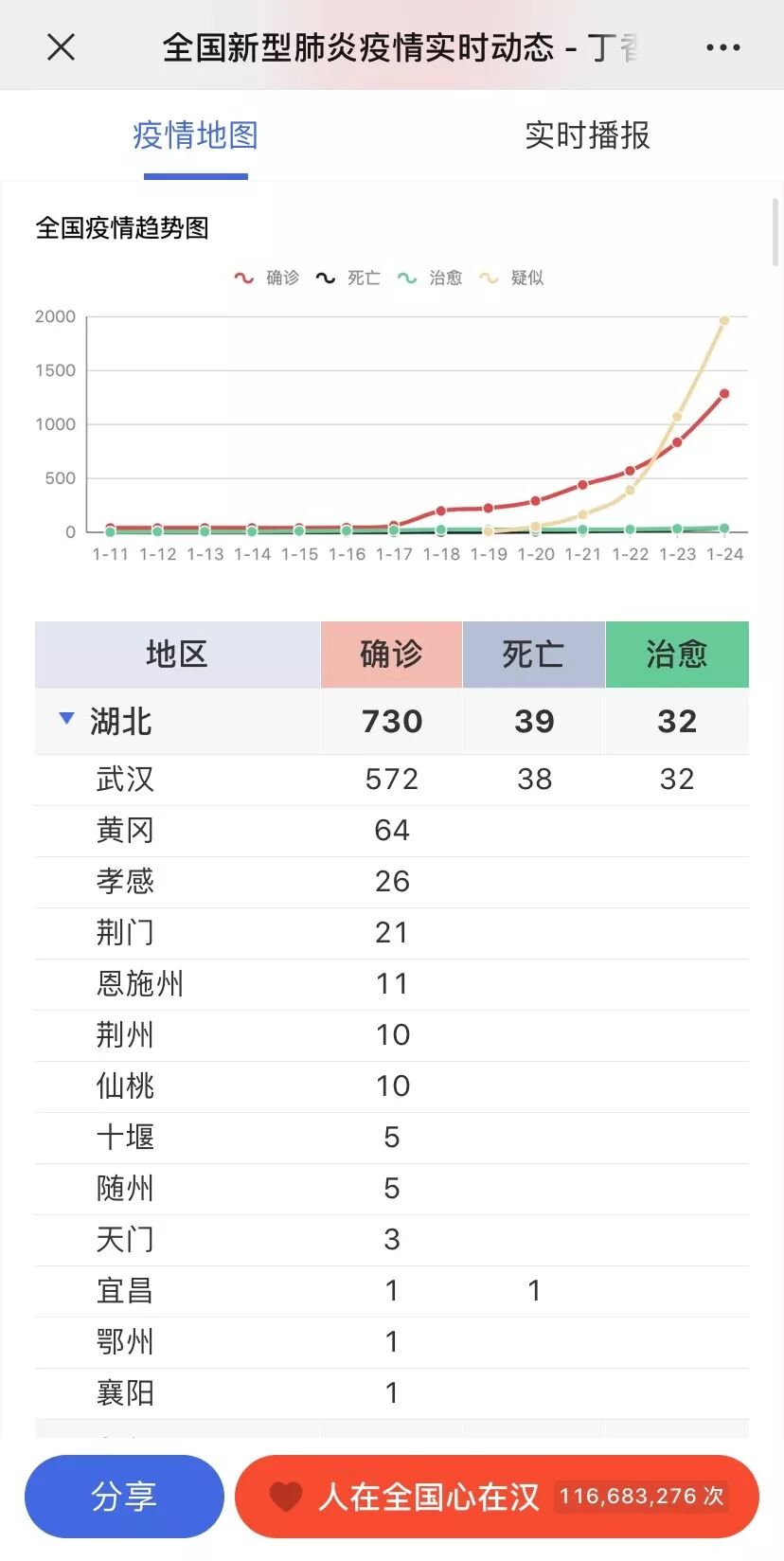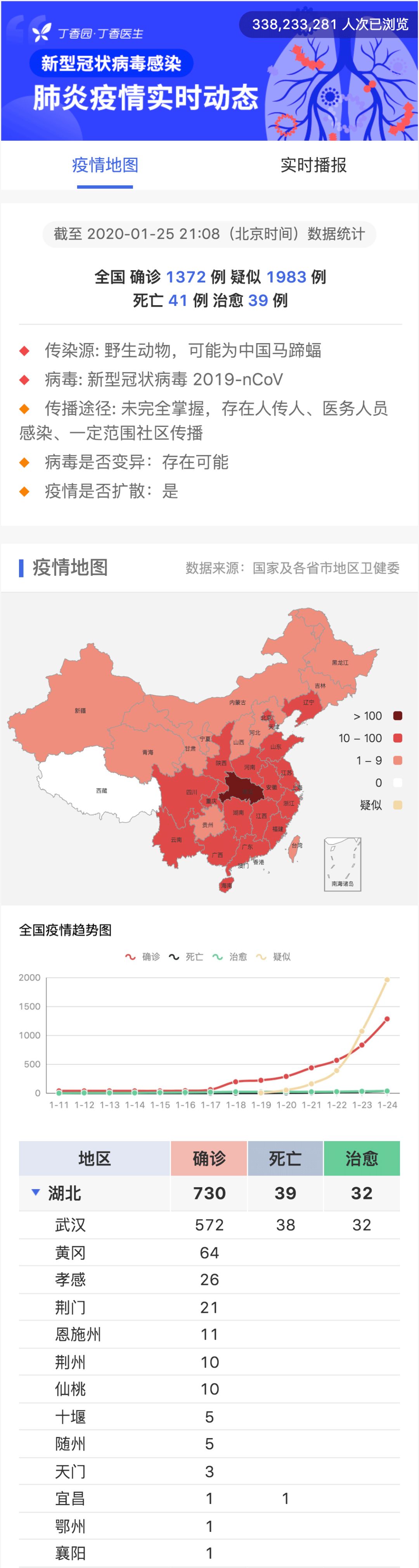為此,丁香園丁香醫生團隊制作了「疫情地圖」,幫大家實時了解新型肺炎的最新進展。