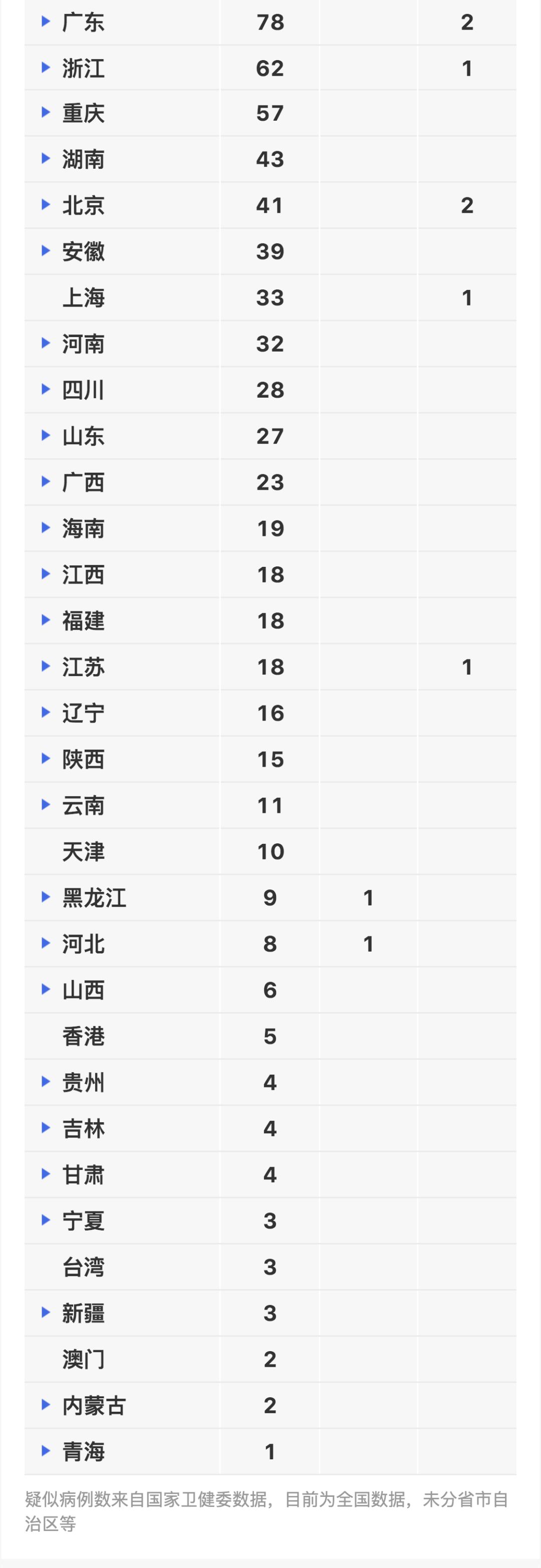 在最新版的疫情實時動態中,我們增加了市?/ 區的疫情情況,點擊對應地區最左邊藍色叁角形圖標即可展開查看。