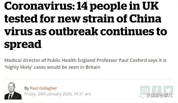就拿英國來說,當地時間1月24日,媒體報道英國有14人出現相關症狀,疑似感染新型冠狀病毒,接受了病毒檢測,