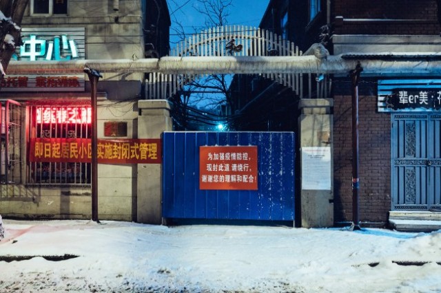 “即日起,”許多金屬板都貼上了標語,“居民小區實施封閉式管理。”
