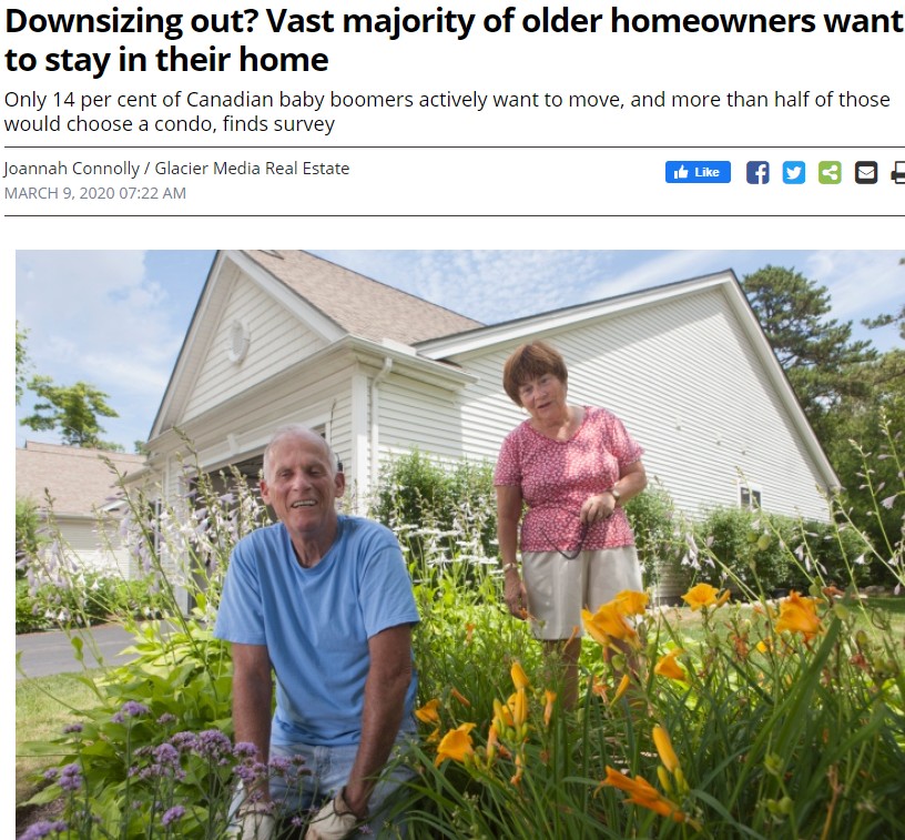 来自民意调查公司Mustel Group和房地产代理公司苏富比国际房地产加拿大的当地老龄化(Aging in Place)报告也发现了类似趋势。