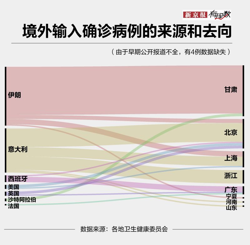 流向甘肅、北京、上海、浙江,成為大多數境外輸入病例的選擇。