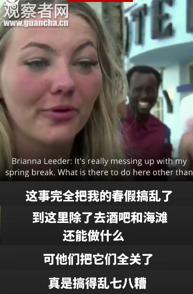 布里安娜·里德(Brianna Leeder)抱怨疫情把她的春假搞砸了,“到这里除了去酒吧和海滩还能做什么,可是他们把它们全关了”,“我认为他们在小题大做”。
