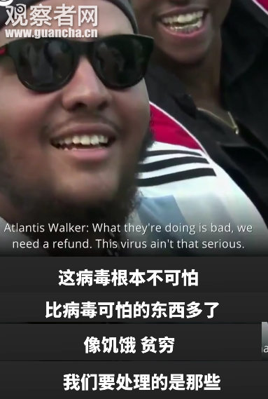 亚特兰提斯·沃克(Atlantis Walker)认为这做的太糟糕了,要求退款。他还笑着说到,“病毒根本不可怕,比病毒可怕的东西多了去了,如贫穷、饥饿”。