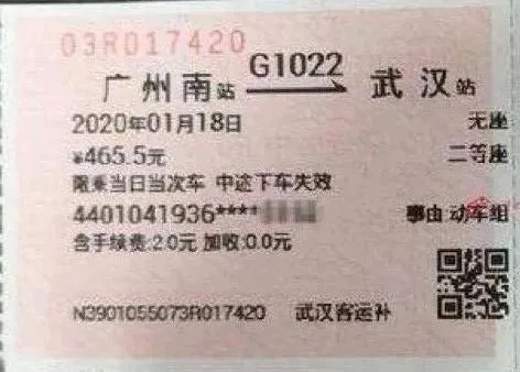 出發時間1月18日,起點廣州,終點武漢,票價465.5元。