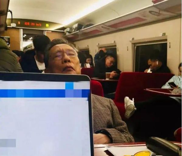那天,臨時上車的他被安頓在了餐車的壹角。很多人都看到了那張照片。