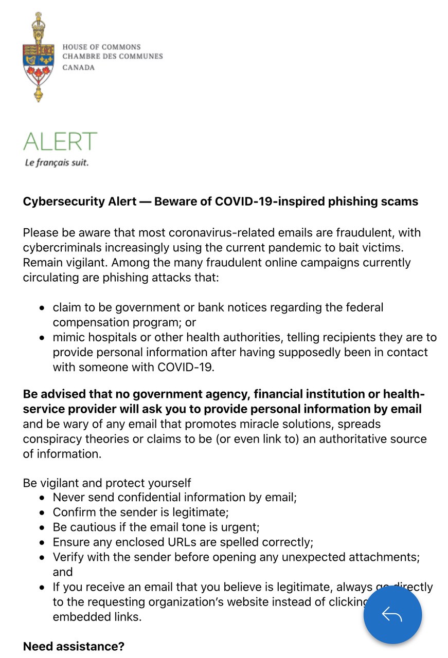 在新冠病毒肺炎肆虐的情況下,騙徒亦會利用疫情來騙財。國會議員關慧貞表示,她近日收到國會科技資訊保安部門的通告,説騙子會借用新冠病毒肺炎來行騙。呼吁大家要小心緊慎。