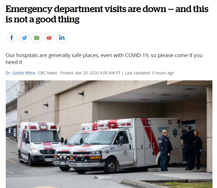 人們在受到感染後心髒病發作、中風或嚴重感染的可能性極低,相反,醫生們擔心那些因感染COVID-19,而選擇不去急診室的其他患者。