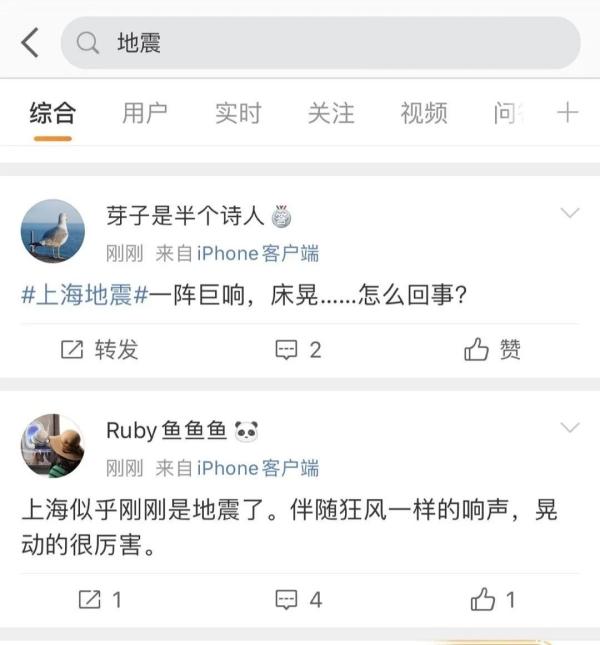 今天(20日)凌晨,有網友聽到上海巨響懷疑地震,@上海市地震局 緊急辟謠,經核實,震動系上海中環中心改建工程(普陀區真北路1531號)於今日凌晨0時30分進行的爆破作業所致。