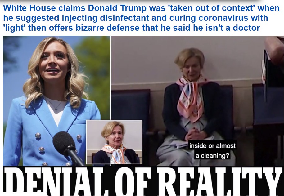 美國食品藥品管理局(FDA)局長Stephen Hahn博士也對CNN的主持人Anderson Cooper表示:“我當然不建議人們內部攝入消毒劑。”