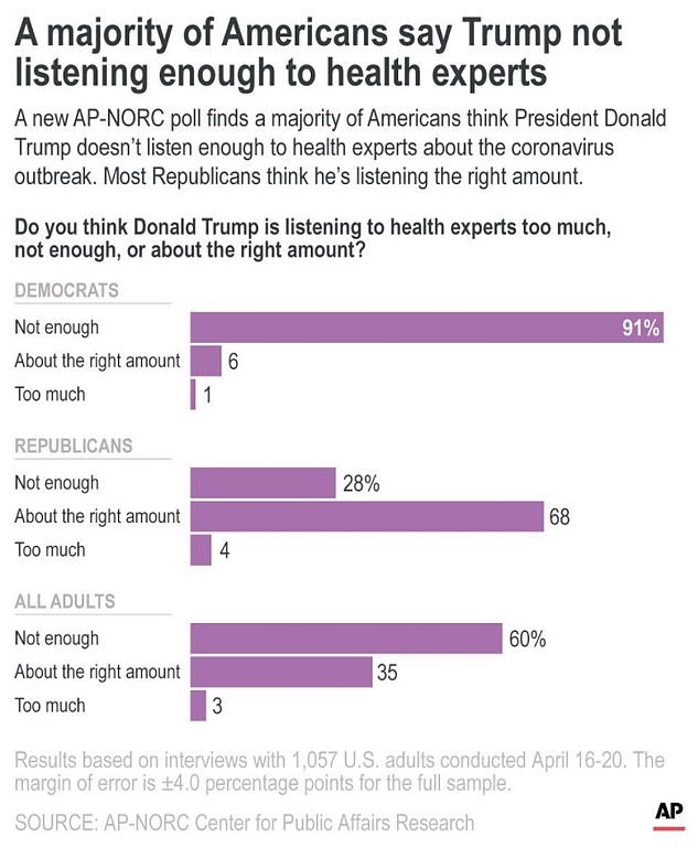 意思就是希望自己的總統不要再胡鬧了,因為有60%的人認為川普沒有充分聽取衛生專家的意見。