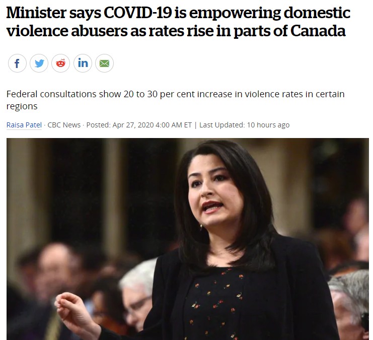 討論發現,加拿大壹些地區的基於性別的暴力和家庭暴力的比率增加了20%至30%。目前,尚無關於暴力事件發生地點的數據。
