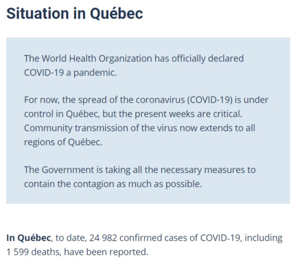 勒格托省長在臉書上表示:我們正在贏得對抗病毒在社區傳播的第壹場戰斗,這是開始逐漸恢復魁北克省的優先條件。