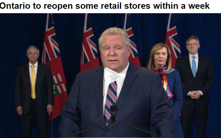 安省今天也宣布,下周一些可以提供路边取货的零售商店也要开放了。
