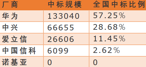 叁大運營商2020年5G基站集采招標結果已塵埃落定,華為、中興通訊、愛立信和中國信科(大唐移動)共享700億大單,諾基亞被徹底忽略。