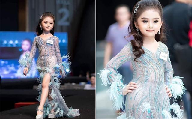 從她的選美照片中看到,穿著壹身天藍色貼身裙裝的小姑娘,看起來非常美麗,簡直就是縮小版的模特。采用的露腿設計跟收腰設計,更是完美將她的身材比例凸顯出來。雖然才6歲,身高不是很突出,但是身材比例就擺在那裡,將來長大絕對是壹個大美女。