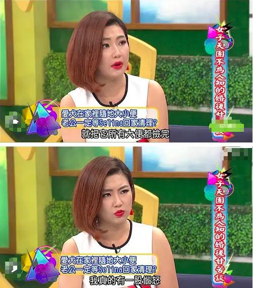 除了阿嬌,Selina早年沒和老公離婚時,就在《康熙來了》上吐槽自己老公不做家務。出差前狗在客廳拉了狗屎,等她出完差回家狗屎還在地上,她前夫就只是拿張紙巾蓋住,不讓狗屎污染自己的眼睛,完全不想收拾。