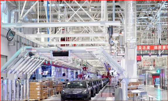 特斯拉老板馬斯克鋒芒畢露,威脅要把工廠遷出加州,傷害了與州政府的關系。圖為在特斯拉上海工廠裡生產的汽車。(路透社2020年1月7日資料照)