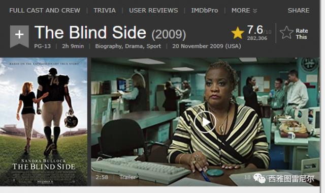 這是壹部基於真人真事改編的電影,男主角是2009年美國國家橄欖球聯盟(National Football League)選秀狀元Michael Oher。