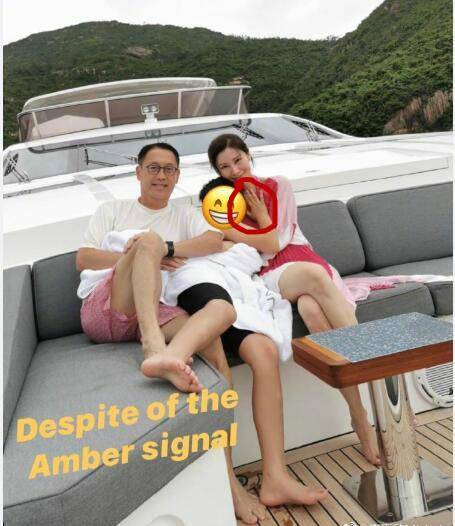 在壹家人坐在游艇沙發上拍的合影照中,李嘉欣還特意用貼紙將許建彤的臉擋住,對兒子很是保護。